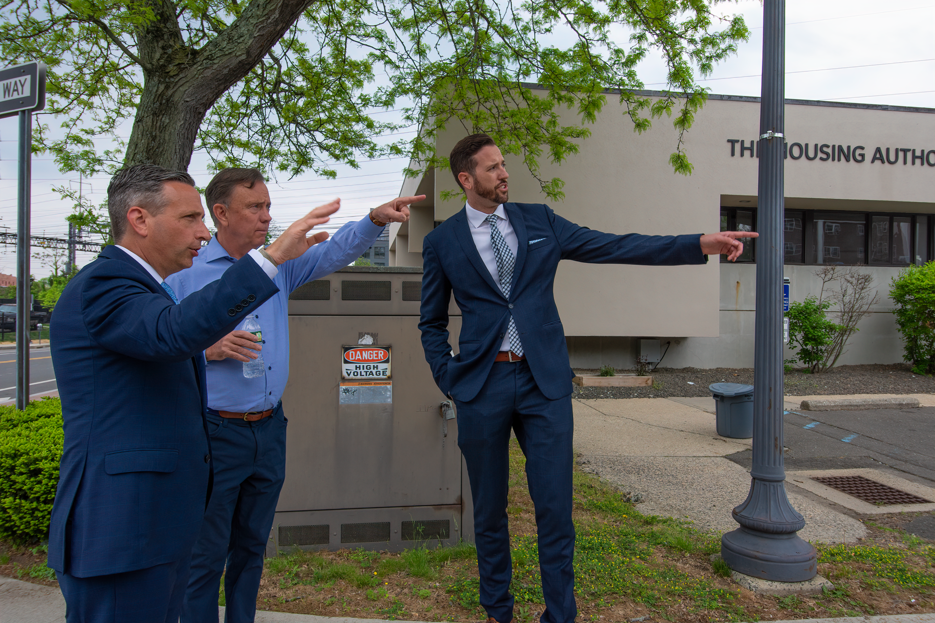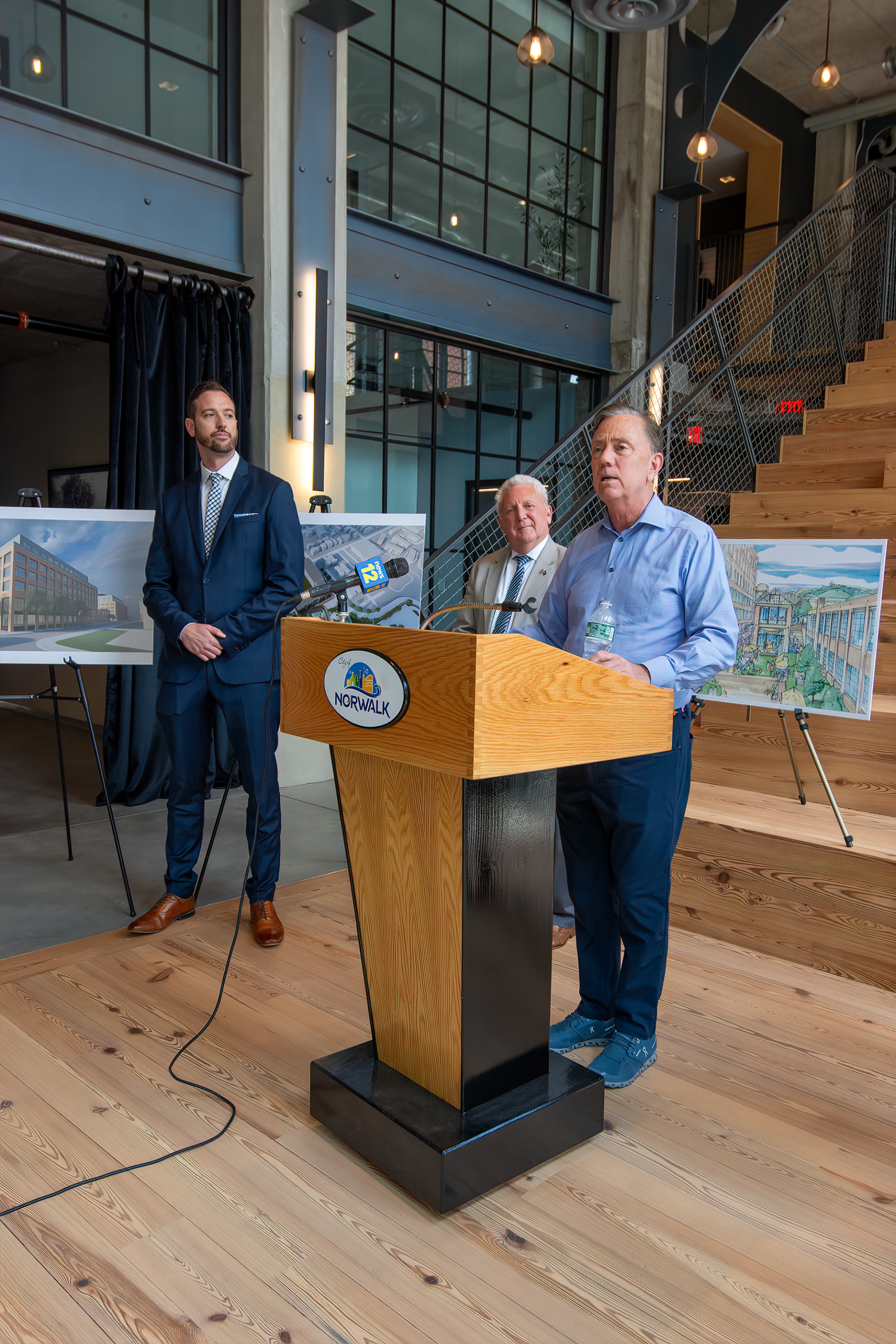 At a press conference on May 16, 2022, State Senate Majority Leader Bob Duff (D-Norwalk) and Norwalk Mayor Harry Rilling applauded the announcement of a $6 million state grant for the city of Norwalk and the Norwalk Redevelopment Agency to make infrastructure upgrades to facilitate the construction of new residential and commercial development near the South Norwalk train station.